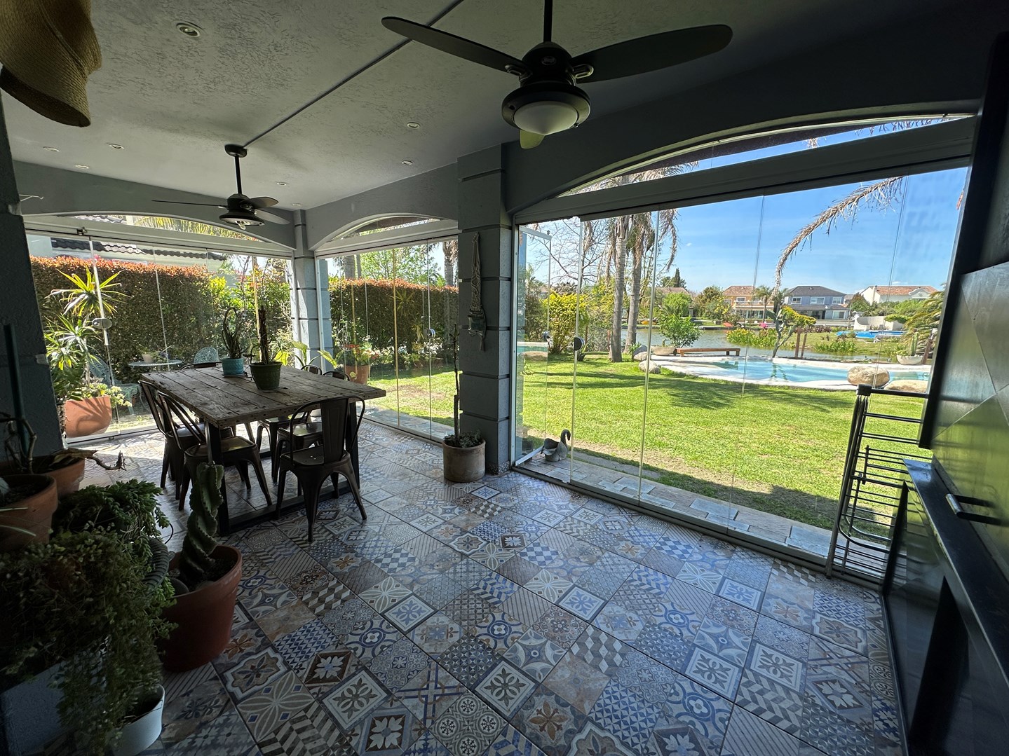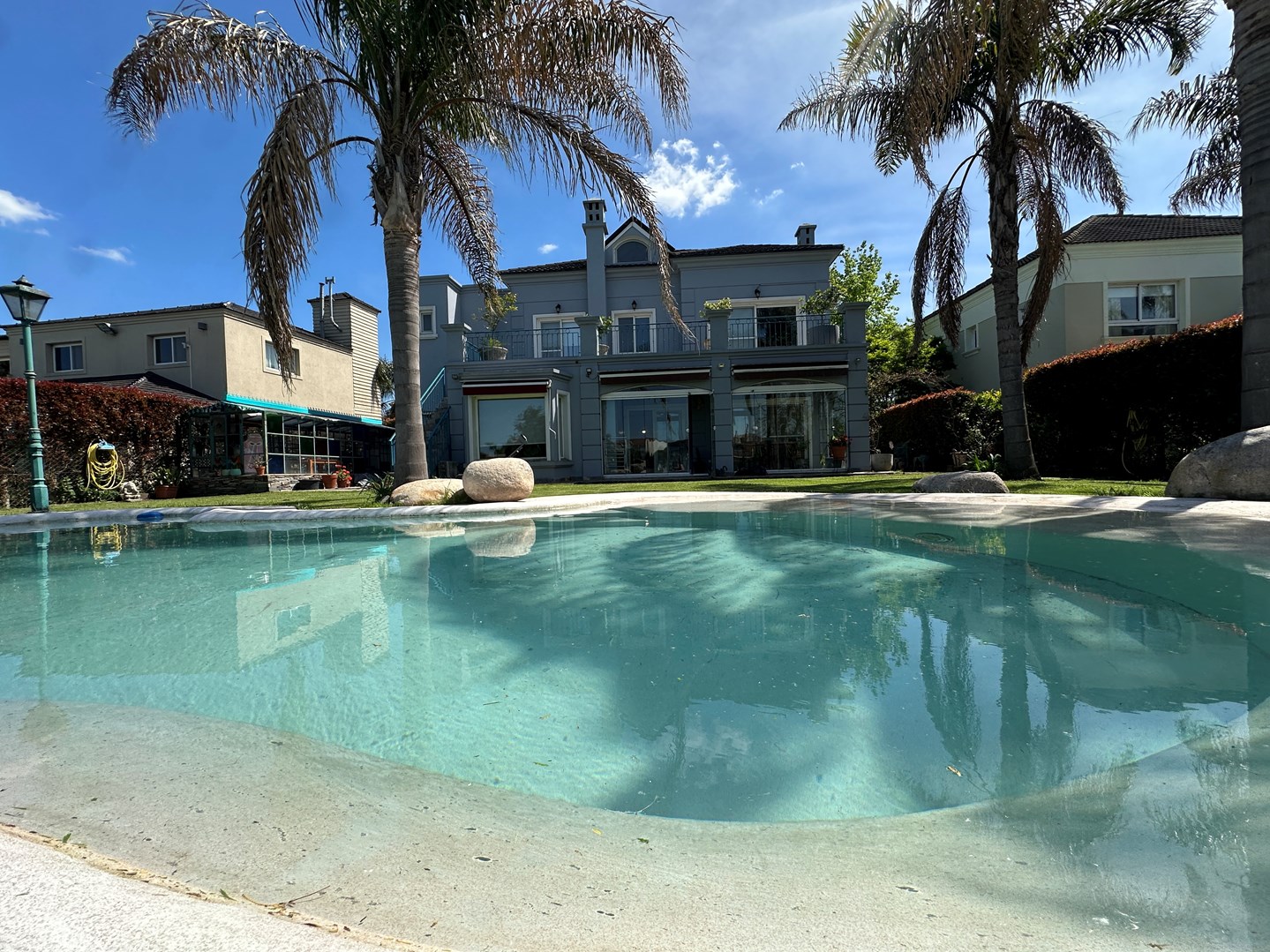 Hermosa casa con gran diseño y detalles de calidad. En planta baja se encuentra un amplio living comedor con hogar y salida directa a la galería, cocina independiente con comedor diario y playroom, todos con salida al exterior. Gran dependencia de servicio con baño y acceso independiente desde el jardín. La galería está equipada con parrilla, bacha y cerramiento de reiki, ideal para reuniones familiares y sociales. El jardín, finamente parquizado, cuenta con pileta revestida en blanco símil arena con forma orgánica, fuente para peces y un muelle privado con acceso al agua. Además, dispone de un “tallercito” exterior de usos múltiples. En planta alta se desarrolla la suite principal con salida a un amplio balcón terraza, vestidor y un baño completo con hidromasaje, box de ducha, doble bacha y sanitarios compartimentados. Completa la planta una suite junior y dos dormitorios en semisuite con baño compartimentado y doble bacha. La propiedad cuenta también con un gran altillo de usos múltiples, adaptable como escritorio, playroom o espacio de guardado. DVH Apto Credito Calefacción por losa radiante CMCPSI6421 MC